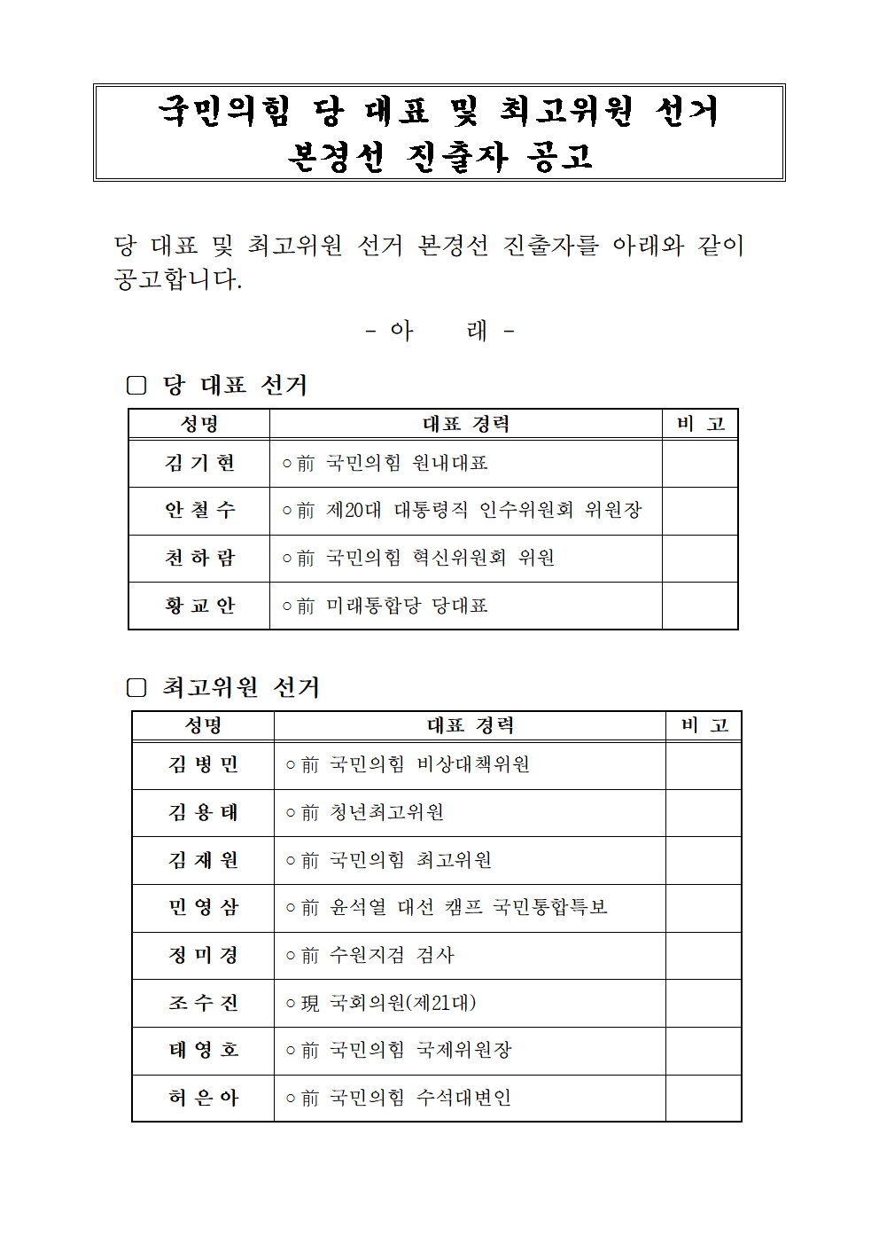 국민의힘 당대표 선거일 여론조사 상황을 정리해보도록 하겠습니다. 국민의힘 전당대회 레이스가 시작된 가운데 선거일과 후보에 관심이 높아지고 있습니다.