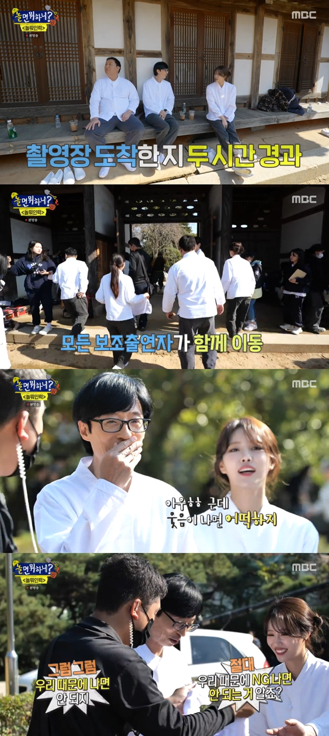 작년 10월 22일 방영된 MBC ‘놀면 뭐하니’ 157회에서 유재석, 이미주, 정준하가 꼭두의 계절에 단역으로 출연했는데요, 당시 '놀뭐인력' 특집으로 '사람이 필요한 곳이라면 어디든 달려가는 놀뭐인력'이라는 컨셉으로 진행된 회차입니다.