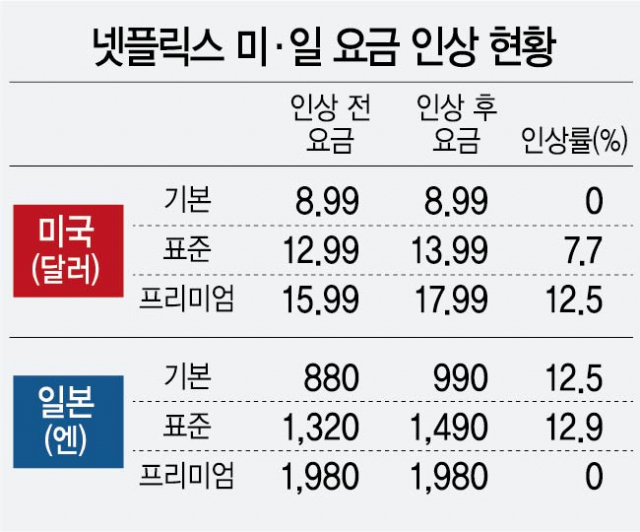 일본은 2020년 2월 가격이 인상되어 베이식 요금제가 월 880엔(약 9000원)에서 990엔(약 1만원), 스탠다드는 월 1320엔(약 1만3600원)에서 1490엔(약 1만5300원)입니다.
