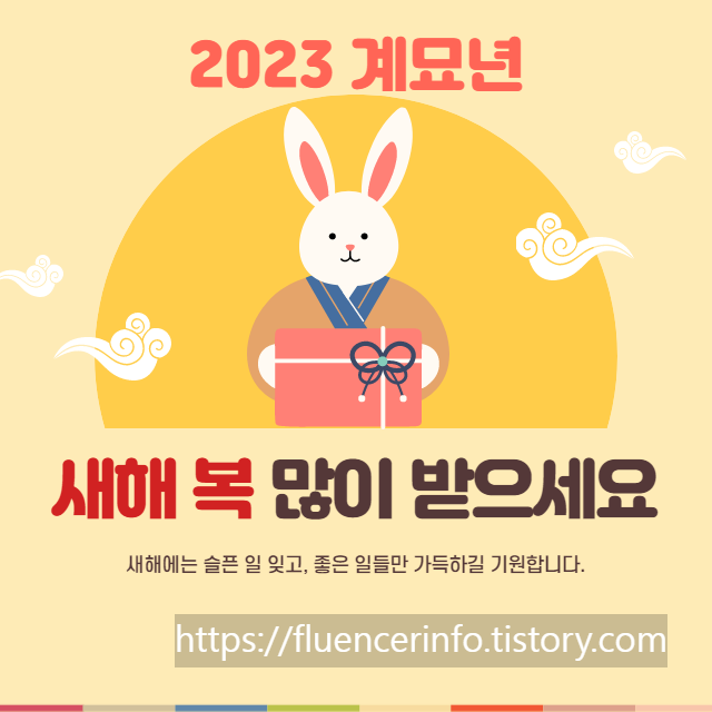 즐거운 설명절입니다. 새해의 좋은 기운 많이 받으셔서 2023년 승승장구하는 한 해 되시기를 기원합니다. 늘 건강하시고, 새해 복 많이 받으세요.