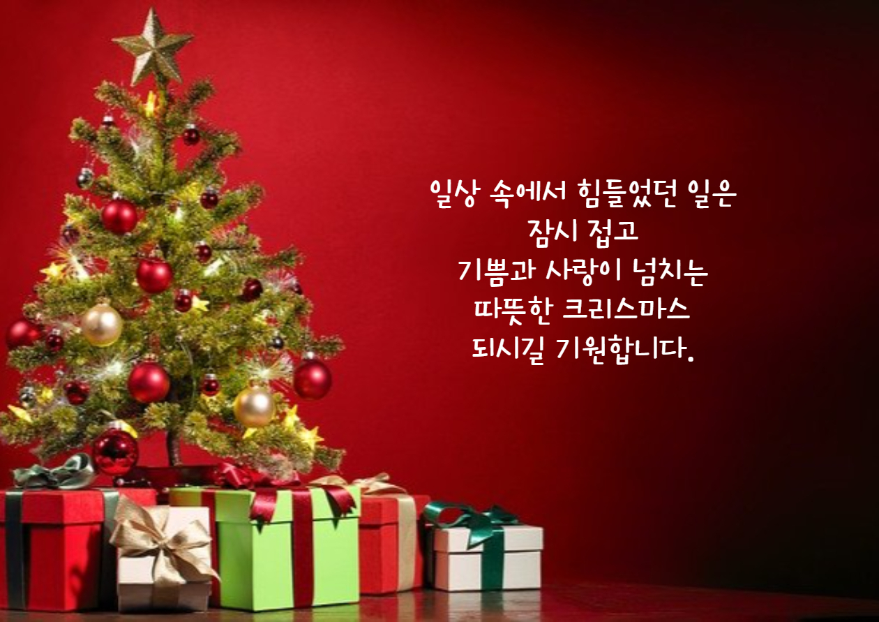 2. 메리 크리스마스! 행복하고 따듯한 크리스마스 보내세요. 건강하고 더 즐거운 새해 맞이하시길 기원합니다. 남은 12월 마무리 잘 하시길 바랍니다.