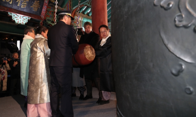 타종 인사는 고정 인사 5명과 서울시에서 추천받은 다양한 분야의 시민(스포츠 스타, 연예인 포함)으로 이루어집니다. 4명이 4개의 조가 되어, 첫 번째 조가 9번 타종을 한 후 나머지 조가 8번씩 타종을 하는 순서입니다.