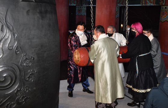 타종 인사는 고정 인사 5명과 서울시에서 추천받은 다양한 분야의 시민(스포츠 스타, 연예인 포함)으로 이루어집니다. 4명이 4개의 조가 되어, 첫 번째 조가 9번 타종을 한 후 나머지 조가 8번씩 타종을 하는 순서입니다.