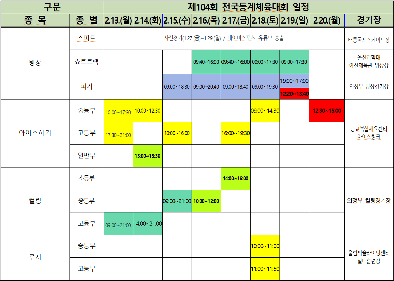 제104회 전국 동계체육대회 (전국동계체전) 일정