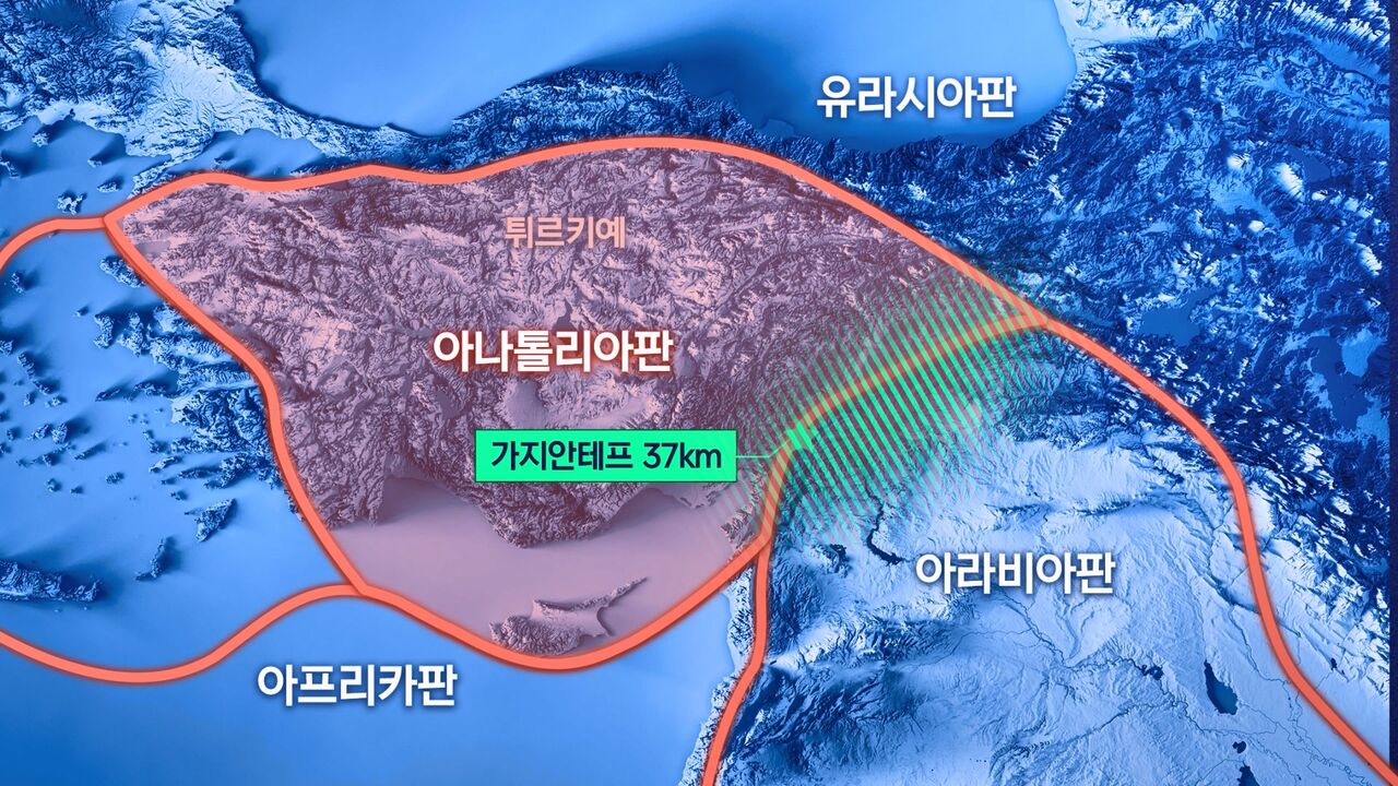 튀르키예 지도 상 위치는 아시아와 유럽의 길목에 서 있다고 볼 수 있습니다. 지질학적으로는 유라시아판과 아라비아판, 아프리카판, 아나톨리아판 등 4개의 대륙판 사이에 자리 잡고 있는건데요, 이번에 발생한 규모 7.8의 강진 역시 이 경계선 일대인 아나톨리아판과 아라비아판 사이의 경계에 위치한 동아나톨리아 단층에서 일어났습니다.