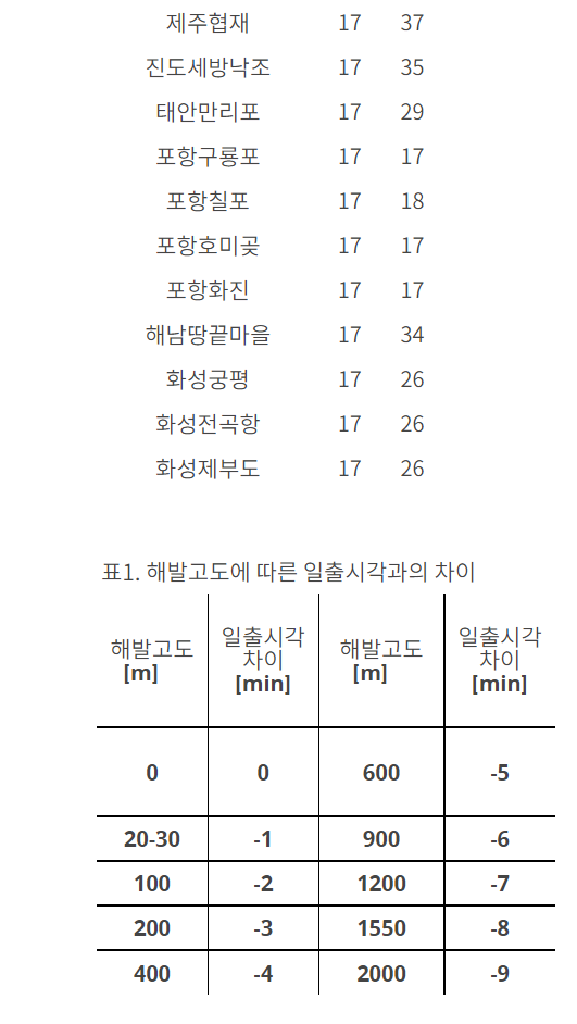 일출이란 해의 윗부분이 지평선(또는 수평선)에 나타나기 시작할 때를 의미합니다. 2023년 새해 첫 해는 아침 7시 26분에 독도에서 가장 먼저 볼 수 있습니다. 내륙지방에서는 7시 31분 울산 간절곶과 방어진에서 가장 먼저 뜹니다. 알려드리는 일출시각은 해발고도 0m를 기준으로 계산된 시각으로 고도가 높을수록 일출시각이 빨라집니다. 따라서 해발고도 100m에서의 실제 일출시각은 발표시각에 비해 2분가량 빨라진다고 하니 참고하시기 바랍니다.