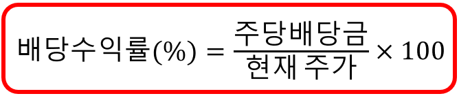 그리고 배당수익률(Dividend Yield Ratio)이라는 것이 있는데 이는 '배당금 ÷ 현재 주가 × 100'으로 계산하여 알 수 있습니다. 일반적으로 배당수익률이 5%가 넘으면 '고배당주'로 볼 수 있는데, 예를 들어 주가가 1만 원인 회사의 주식을 한 주 매수하여 배당금으로 500원을 받았다면 배당수익률은 5%가 되는 것입니다.