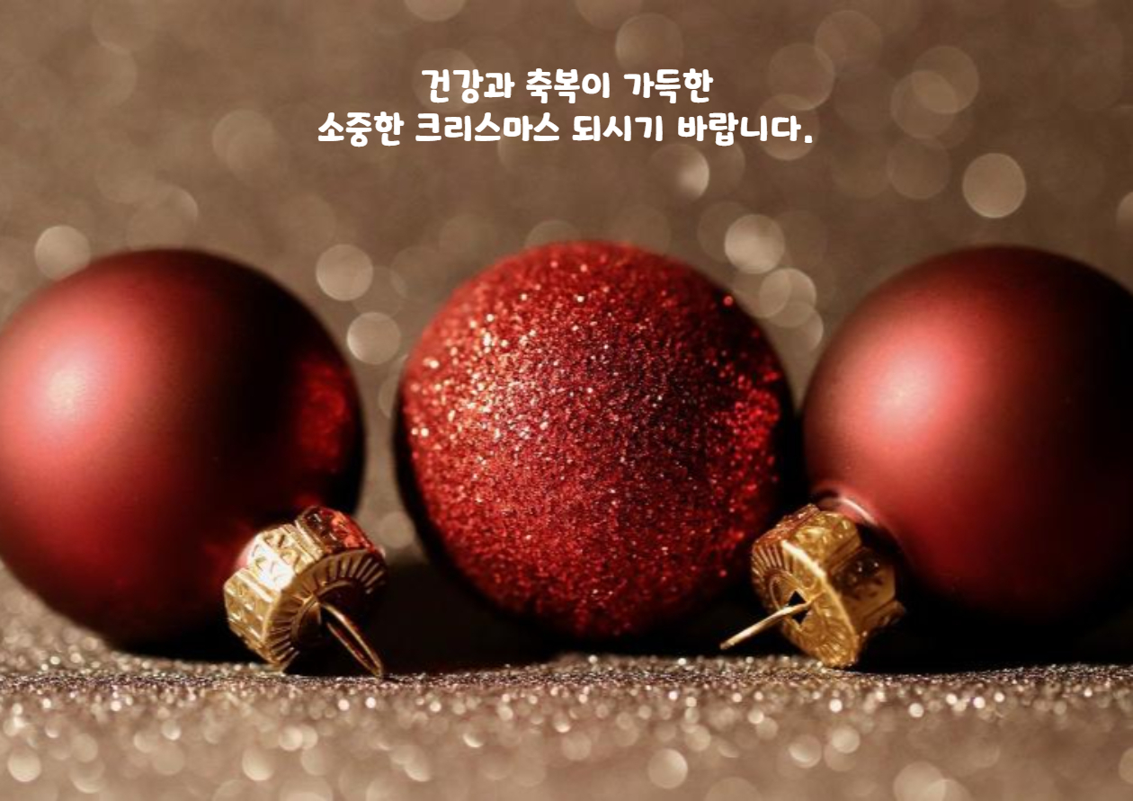 2. 메리 크리스마스! 행복하고 따듯한 크리스마스 보내세요. 건강하고 더 즐거운 새해 맞이하시길 기원합니다. 남은 12월 마무리 잘 하시길 바랍니다.